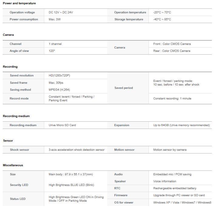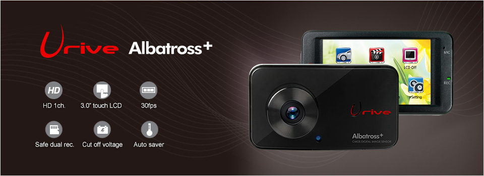 Urive Albatross plus can record important accident scenes and parking monitoring images clearly with vivid resolution (front:1280x720) cameras and the viewing angle (diagonal - front:125°) during the day even at night.