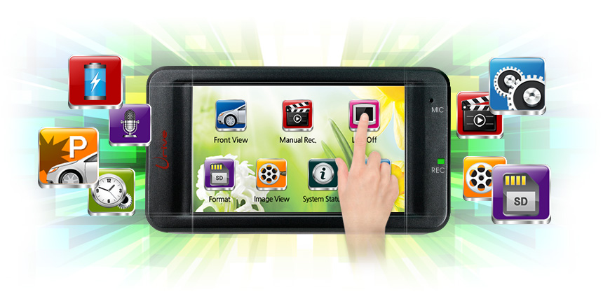 3.0" wide LCD shows real time video images or recorded images. And also, the device configuration and SD card format can be done with just one touch based on the smart GUI.