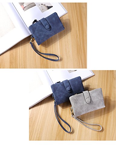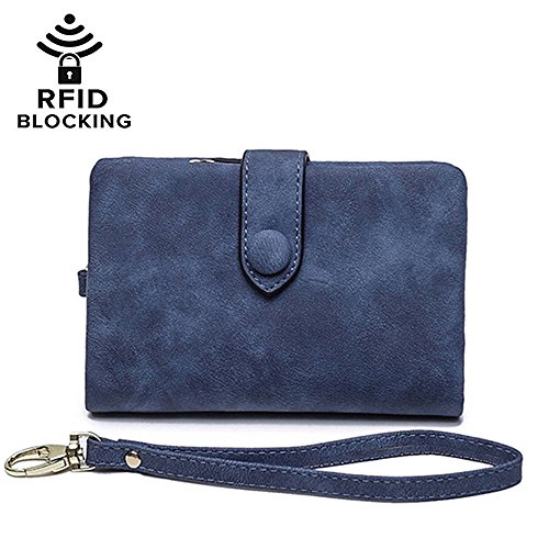 Women's RIFD Blocking Large Capacity Leather Wallet with Removable Wrist Strap