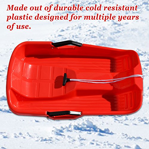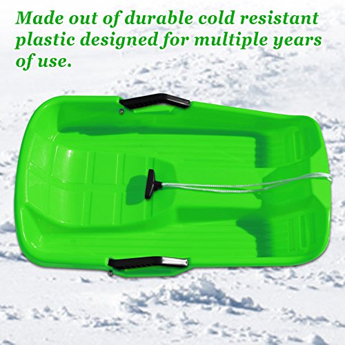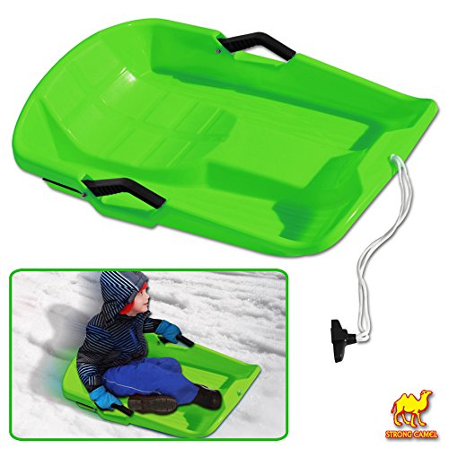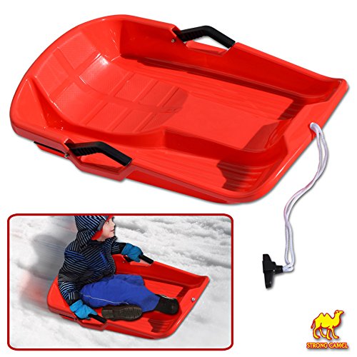 Studio : Strong Camel Publisher : Strong Camel Product Description Light weight design makes it easy to carry and store. This classic plastic sled has built-in handles for your child to grip, grips are smooth so they won't cut or scrape uncovered hands, while the attached tow rope ensures easy pulling. Perfect for any hill! Whether they're new to sledding or have been sledding for years, the sled is guaranteed to provide hours of fun. The plastic design of the snow sled helps you shred down the mountain with ease. If you're too tired to carry the sled after riding down the hill, it comes with a rope to help you pull it through the snow. Pick up your sled board, grab your snow gear and hit the snow with this snow sled. Recommended for ages 3-15. Limited lifetime warranty. 0