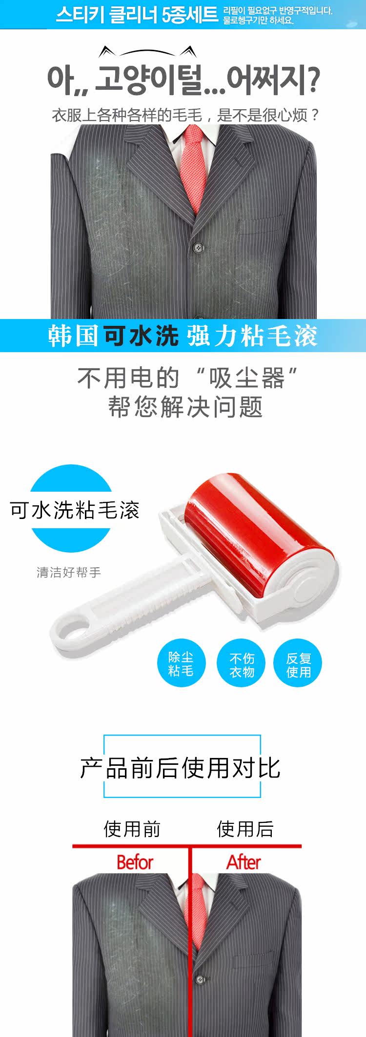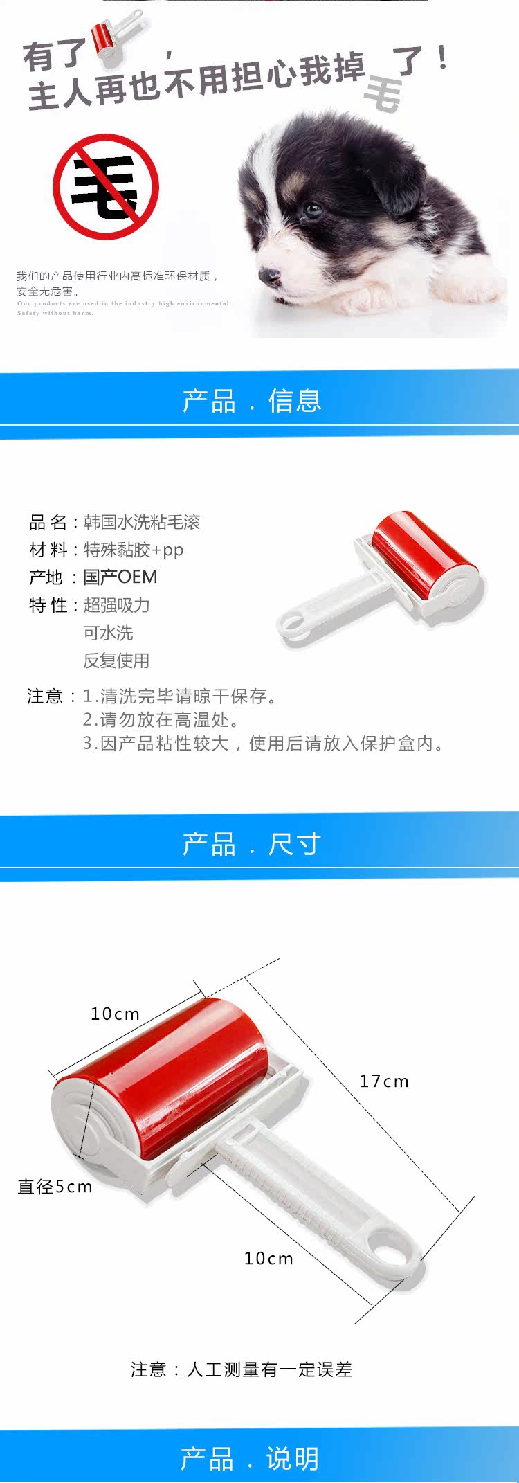 可反复水洗粘毛器 强力除毛刷衣服粘毛滚筒 宠物毛发黏毛滚子