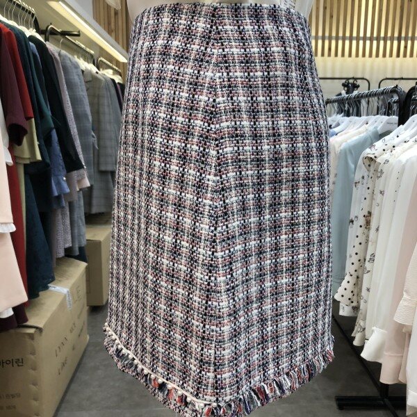 밑단 진주 장식 트위드 스커트 입니다