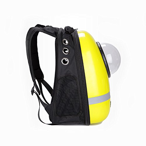 -. Feature : Material: Cotton, ABS, PC, Polyester, EPE, Acrylic / Size: 34.5cm x 29cm x 42cm/13.58" x 11.42" x 16.54" (Approx.) / Large space with big air holes and mesh, comfortable and breathable for your pet. / Features: Travel Backpack, Space Capsule Style, Comfortable, Breathable, Durable / The transparent cover and plastic mesh can be take off.
