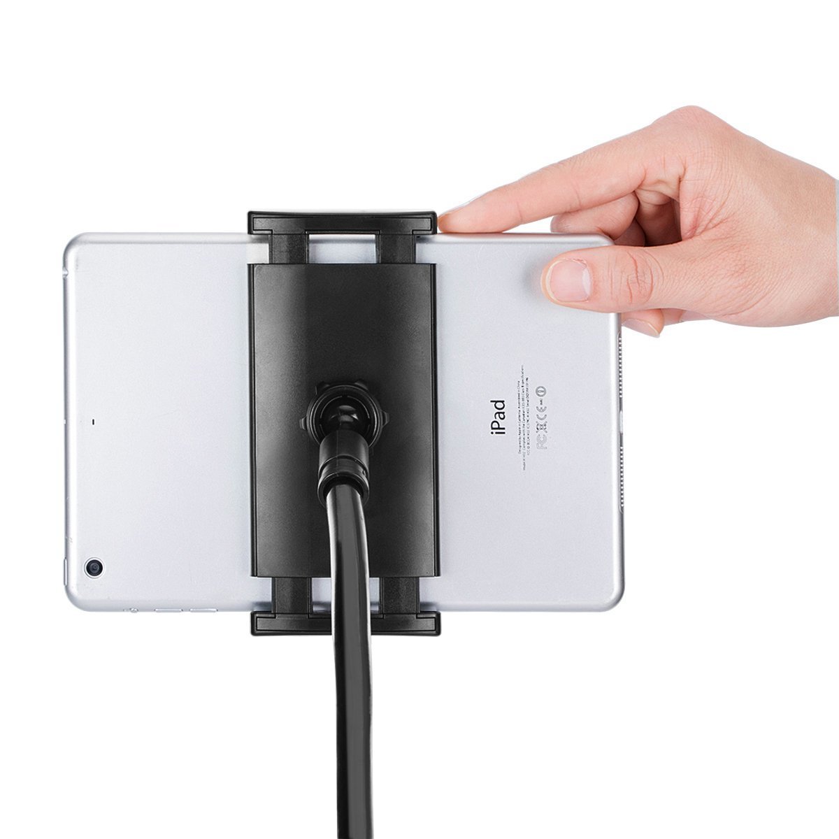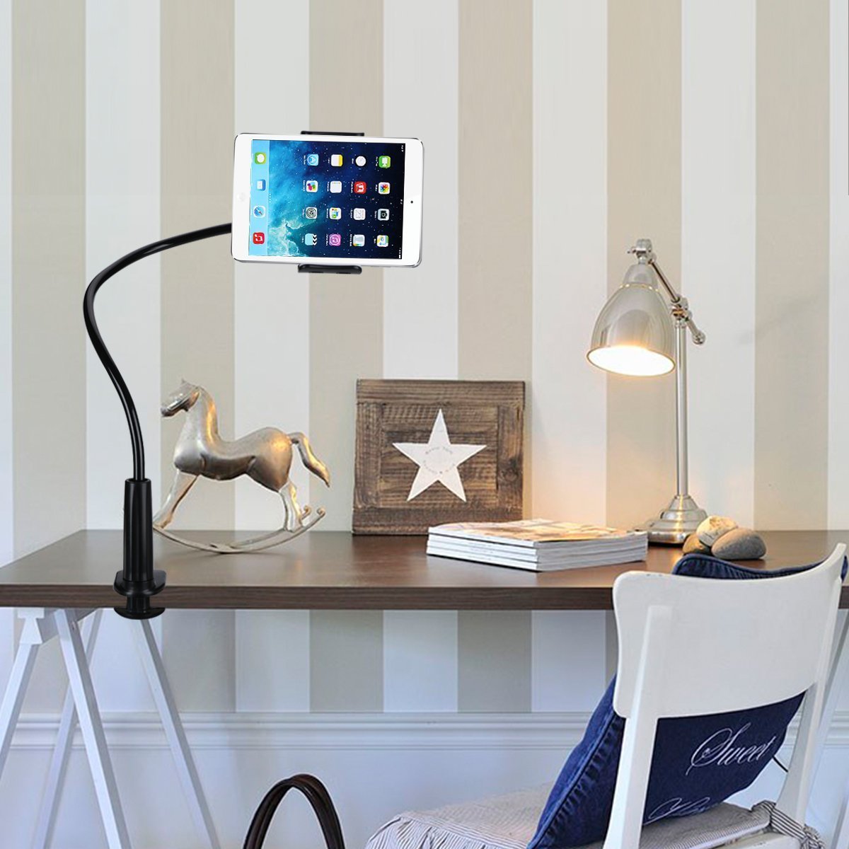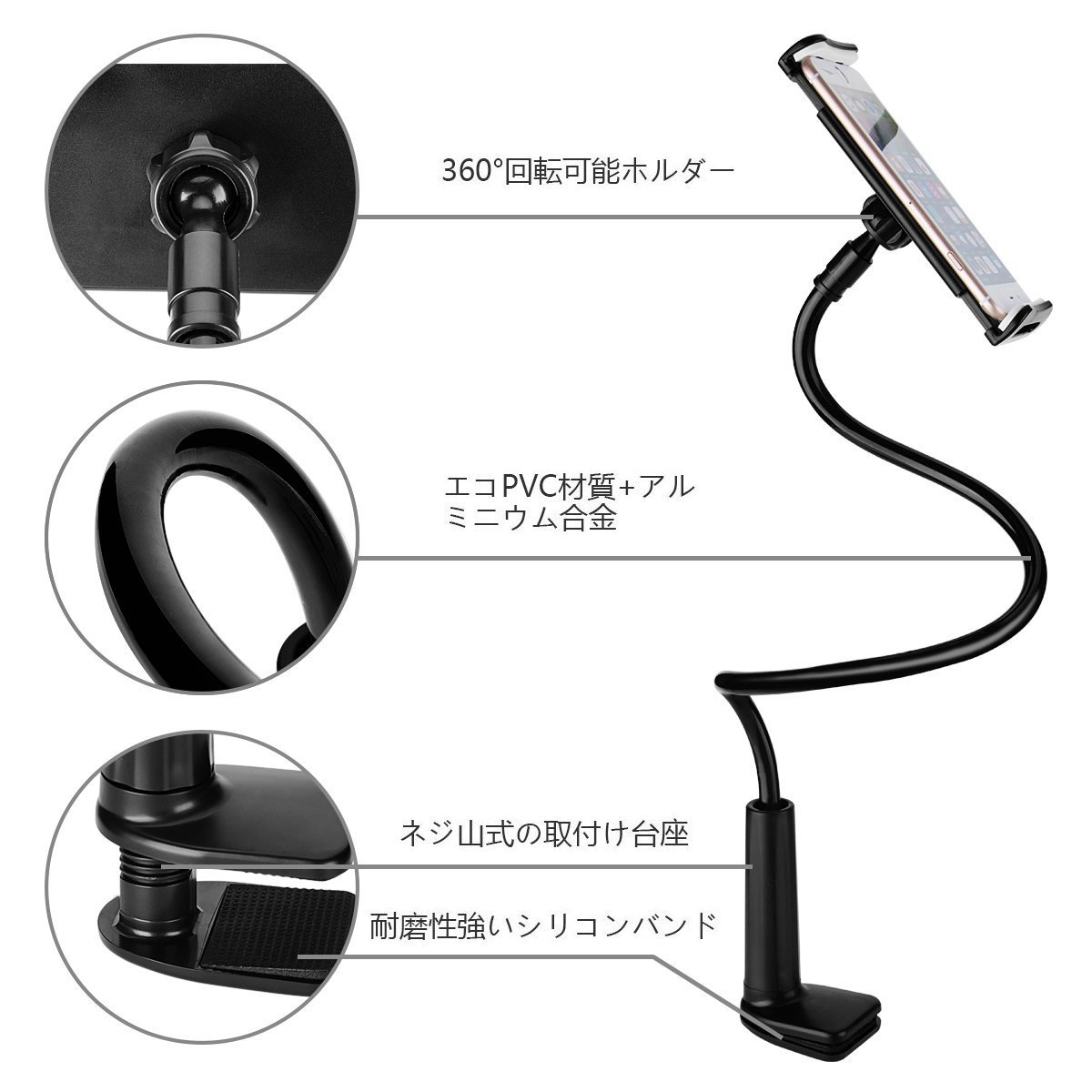 It can be rotated 360 degrees by gooseneck design which can move up and down and right and left, and it is a clamp type which can firmly fix the iPad in a free position.