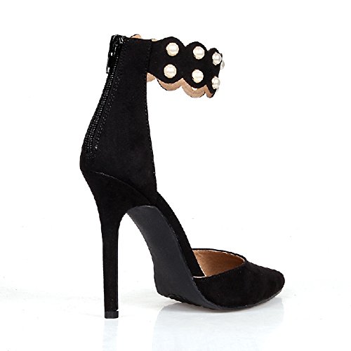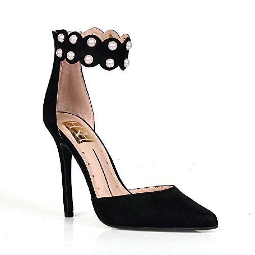 Binding : Apparel Product Description Pumps are always in style all year long and these pointed toe high heel pumps will have everyones attention. Donna features a wavy-edged ankle strap embellished with dome shaped faux pearls, a rear zipper closure that leads to a slender stiletto heel. 0