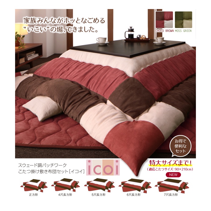 원본상품명: こたつ布? セット 長方形 スウェ?ド調 パッチワ?ク こたつ掛け敷き布?セット icoi イコイ 5尺長方形 こたつ布?セット コタツ布?セット こたつ掛敷セット コタツ掛敷セット コタツ布? 敷布? 敷き布? 掛ふとん 掛け布? こたつ コタツ