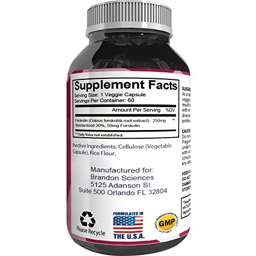 Use pure and potent Forskolin extract to hit a variety of fitness, workout and exercise goals. These are natural weight loss supplements for men and women by Brandon Sciences. The main substance for these supplements is called Coleus Forskohlii, and this is found in subtropical Africa as well as parts of India. As well as those benefits, you can also strip fat as well as packing on and retaining lean muscle through the right weight training regime. The way Forskolin enables your body to do this is through boosting testosterone, which makes it easier for a user to start to gain more muscle. These can also have an appetite suppressant effect on your body, which is another way it helps to lose weight and burn belly fat. Not only can these pure and potent capsules help with weight training goals, but they can also help to keep you in good health for longer as they can boost the immune system. Every single one of the Forskolin weight loss pills contained within the bottle are made using 250 mg Coleus Forskohlii that is a 20% standardized pure extract. They are vegetarian friendly and each bottle contains 60 servings. Not only that, but they are also made in America at a factory that has been GMP certified.Feature