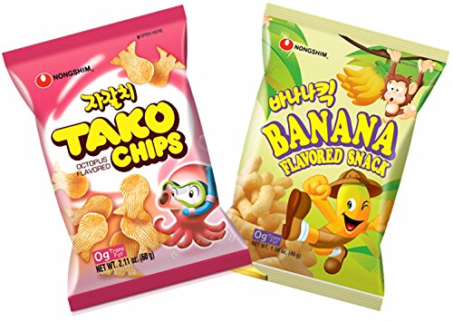 -. Feature : Nongshim Tako Chips (Octopus Flavored) - 2.11 Oz (1 Pack) / Nongshim Banana Flavored Snack - 1.58 Oz (1 Pack) / Total of 2 Packs / Product of Korea