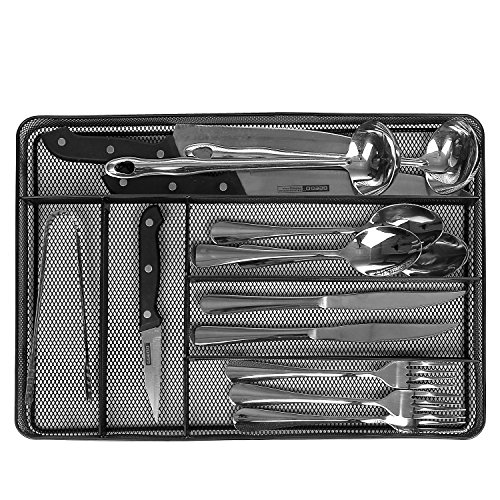 6 Compartment Metal Mesh Kitchen Utensil Drawer Organizer Insert, Cutlery Storage Tray, Black