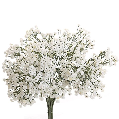 Gypsophila flowers are made of real touch soft plastic, high simulation, and the stems are made of steel wire covered with plastic which makes it easy to bend or shape the way you like