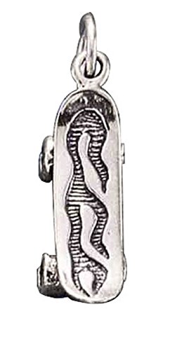 -. Title : Sterling Silver Womens 1mm Box Chain 3D Flaming Skateboard Sports Pendant Necklace