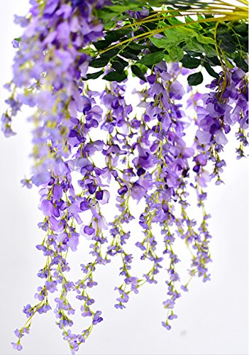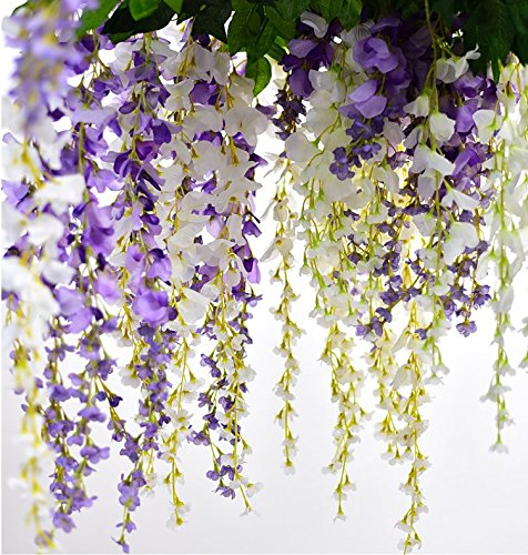 Material:The Artificial wisteria vine flowers are made of high quality silk and plastic,well made and vibrantly colored- looks and feel just like real flowers,Pure natural style,simple and elegant,Easy to wash and keep clean,Simple installation,beautiful wedding home party decoration