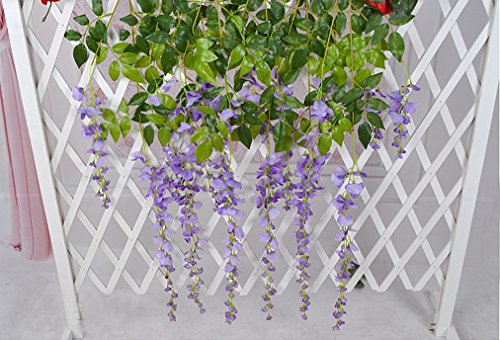 Lannu 12 Pack 3.6 FT Artificial Fake Hanging Wisteria Vine Ratta Silk Flowers String for Home Wedding Party Decor (Purple)