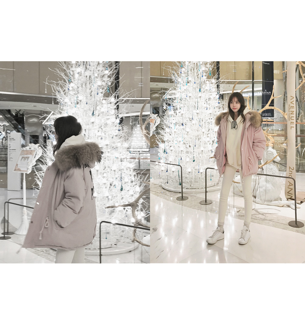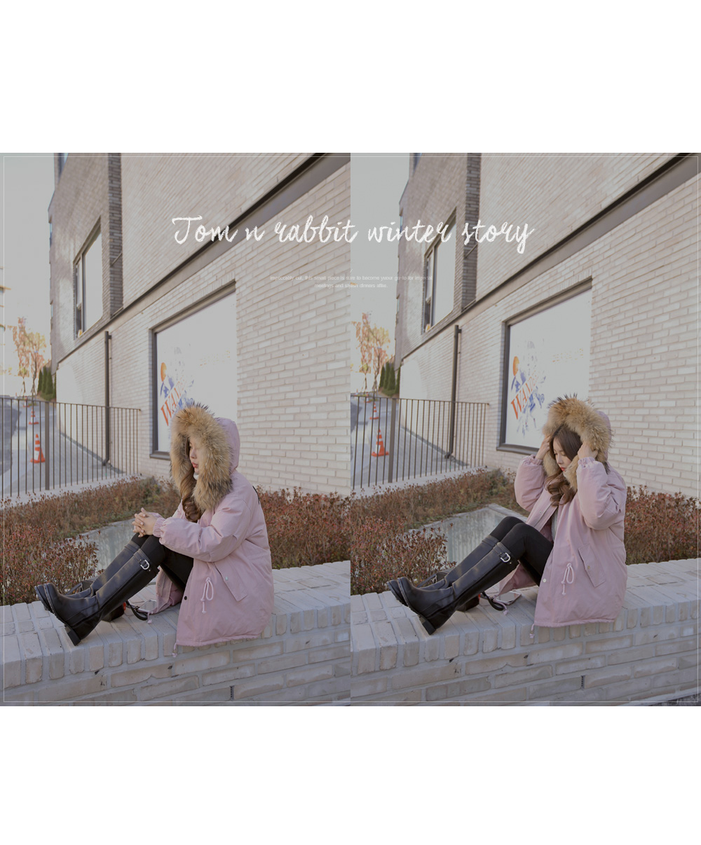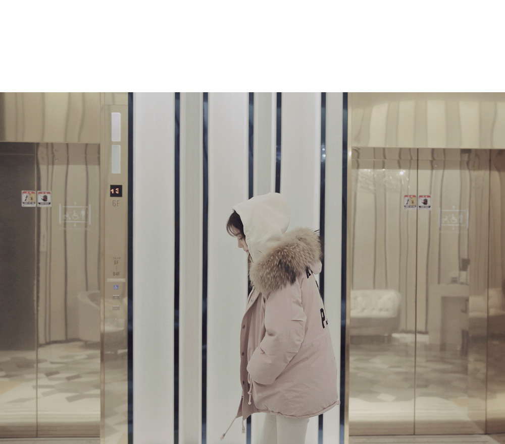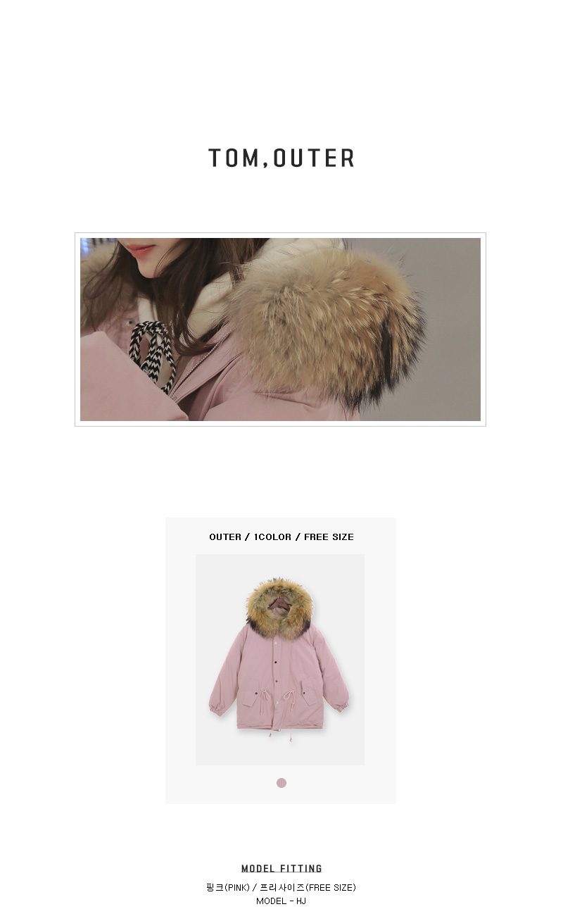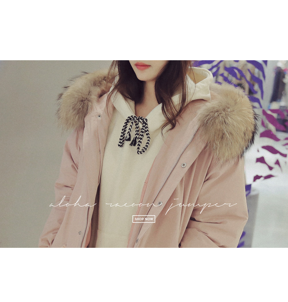 풍성한 리얼 라쿤퍼 후드가 포인트로 들어가 퀄리티를 높였답니다!