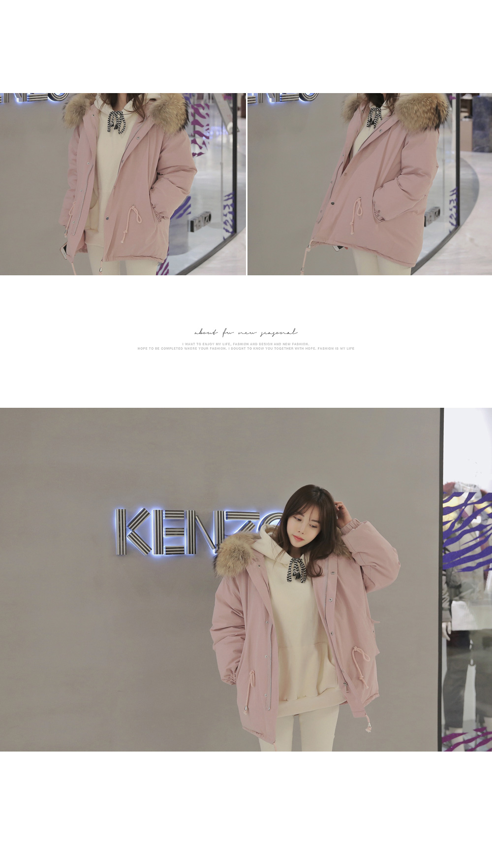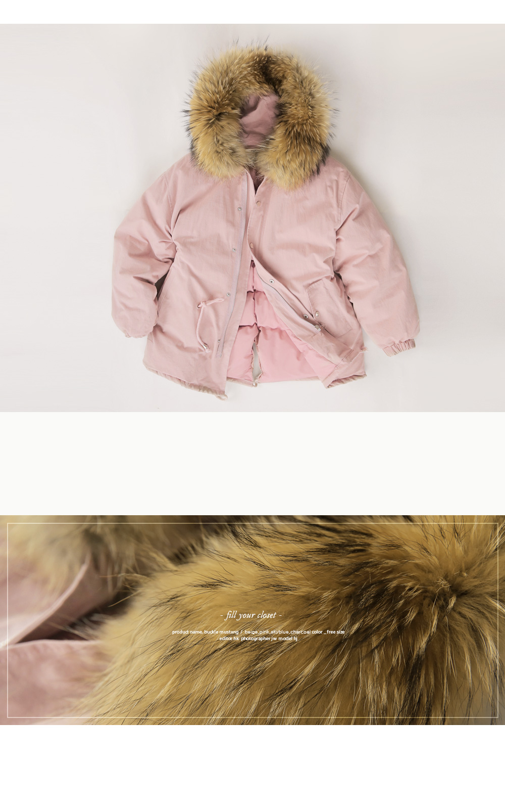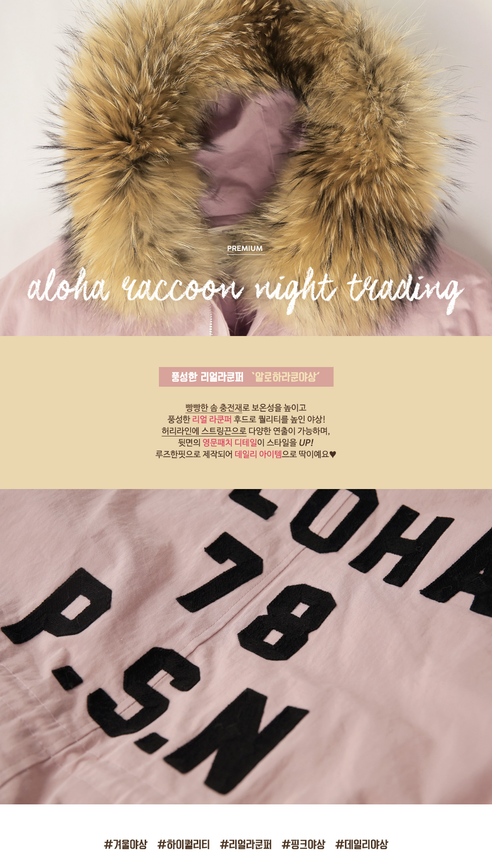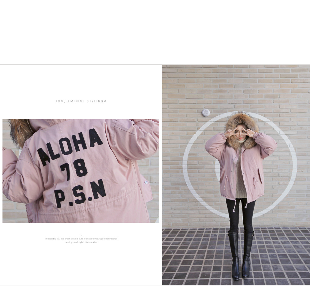 풍성한 리얼 라쿤퍼 후드가 포인트로 들어가 퀄리티를 높였답니다!