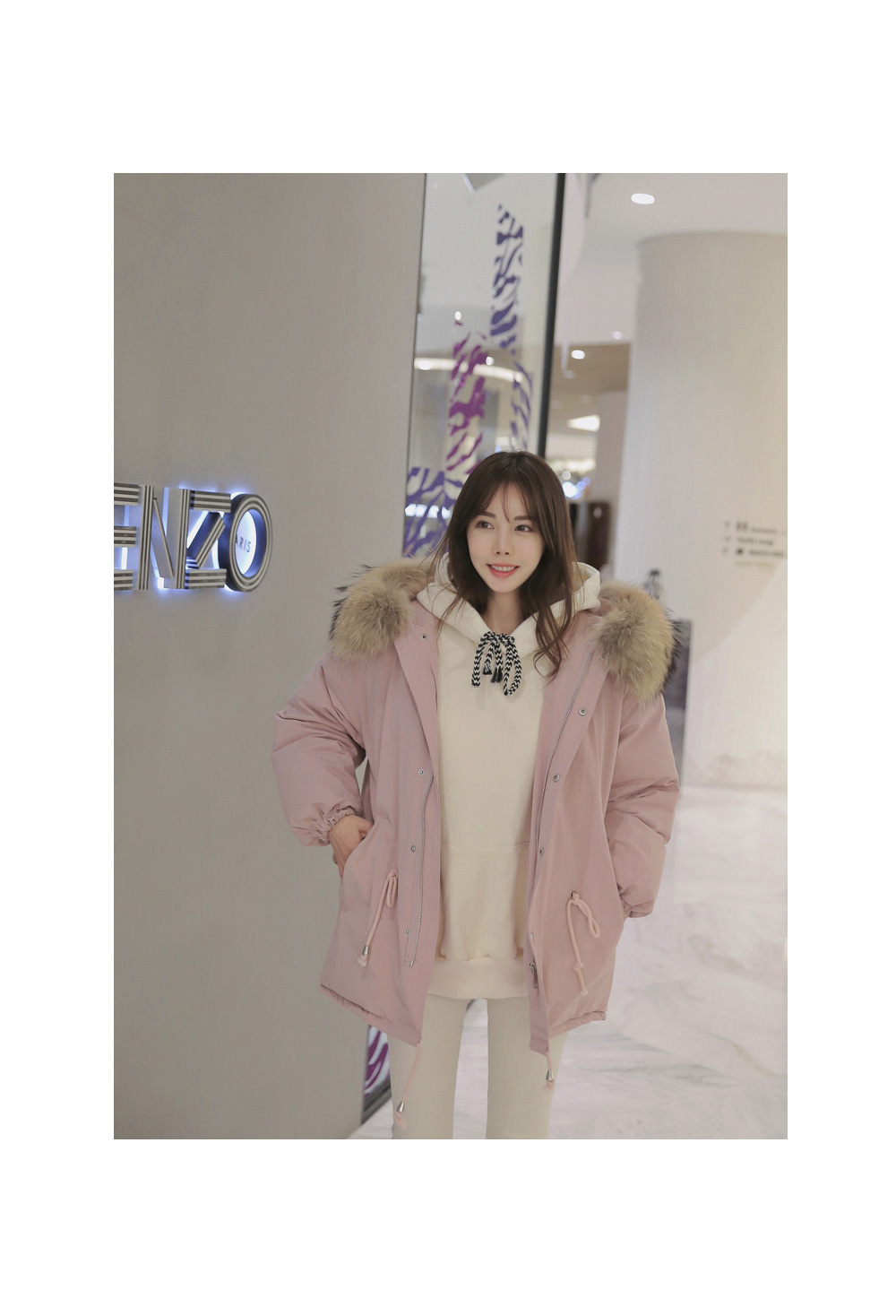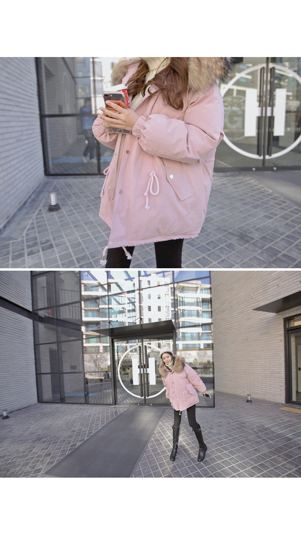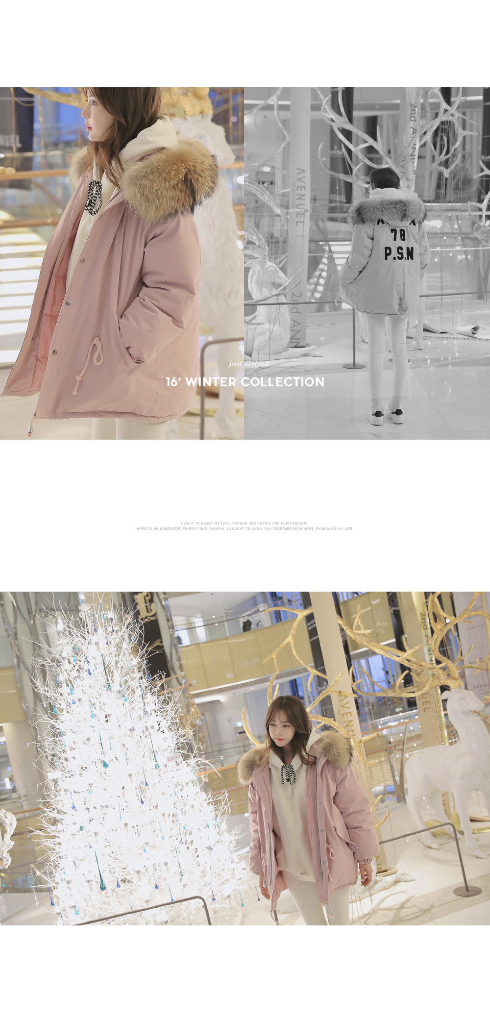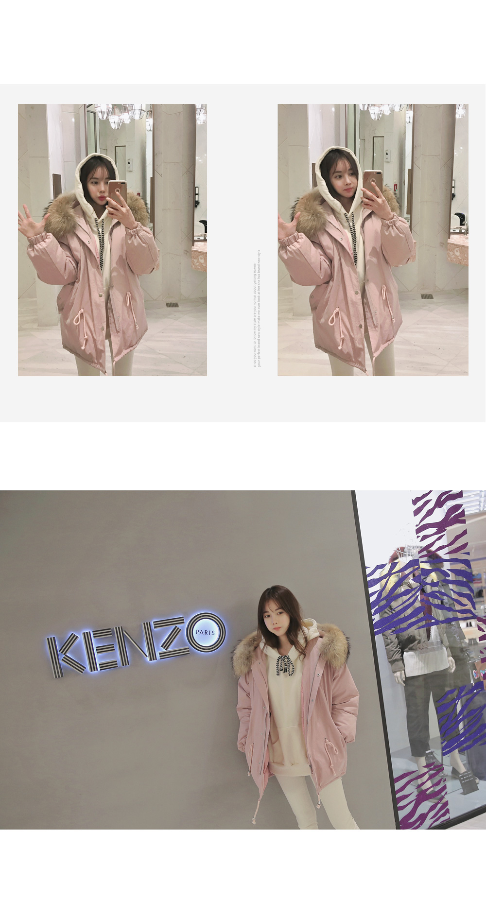 풍성한 리얼 라쿤퍼 후드가 포인트로 들어가 퀄리티를 높였답니다!