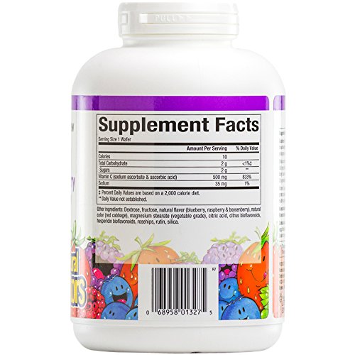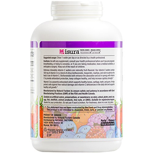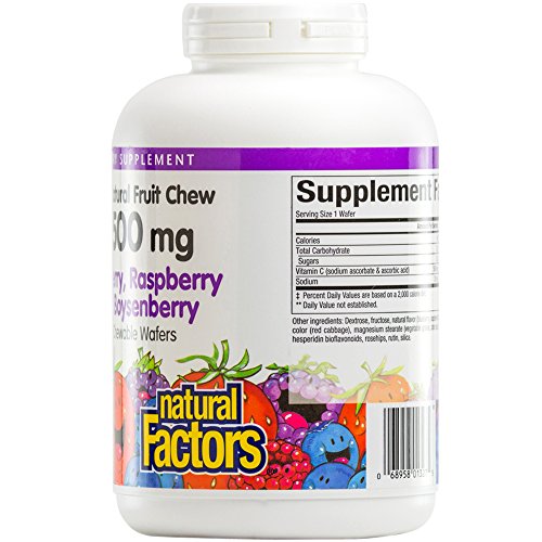 Natural Factors delicious chewable vitamin C wafers are naturally fruit flavored. Vitamin C is an important antioxidant that helps protect the body against environmental pollutants and deficiencies in the daily diet. Kids of all ages love them!
