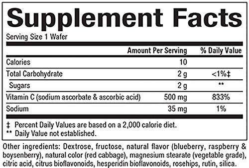 TREAT YOUR CHILD: Vitamin C 500 mg is a fruit flavored wafer supporting healthy immunity, bones, and cartilage.