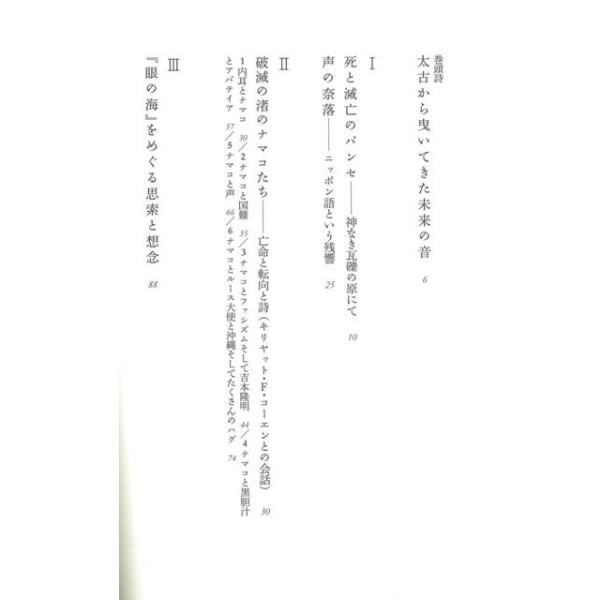 【商品説明】 定価(税込み):1,404円 値引き:8% OFF ●【巻頭詩】太古から曳いてきた未来の音Ⅰ死と滅亡のパンセ--神なき瓦礫の原にて声の奈落--ニッポン語という残響Ⅱ破滅の渚のナマコたち--亡命と転向と詩(キリヤット・F・コーエンとの会話)Ⅲ『眼の海』をめぐる思索と想念、他 バーゲンブック 新品 特価 格安 社会 社会問題 パン 詩 海 音 | |