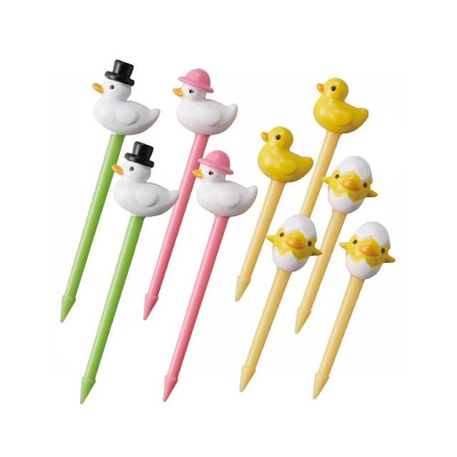 日本进口 可爱的鸭宝宝一家儿童便当装饰签 鸭鸭家族水叉 水果签