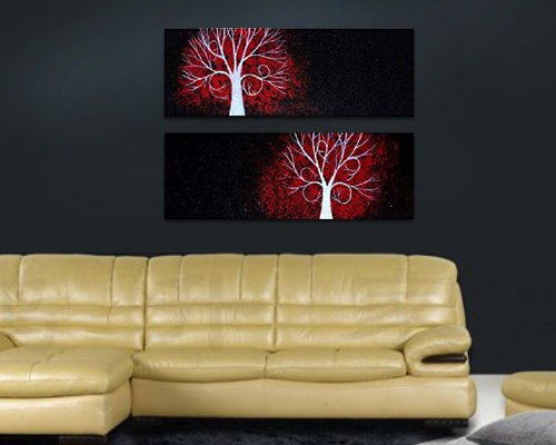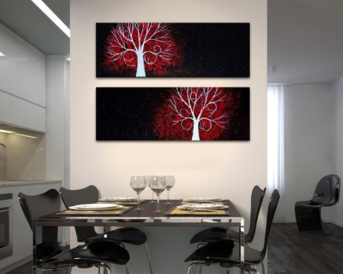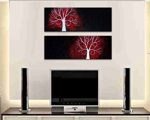 - Title : Cherish Art 100% Hand Painted Oil Paintings Gift Red Trees 2 Panels Wood Inside Framed Hanging Wall Decoration