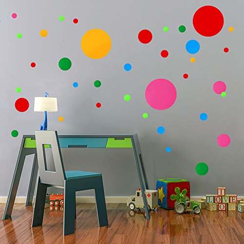 Polka Dots Wall Decals 91 pcs Cute - Colorful Round Stickers for Toddlers & Kids Bedroom,Playhouse,Nursery Decorations