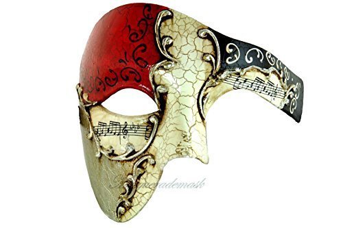 -. Binding : Toy -. Color : red/black/beige/gold -. Department : Costumes -. EAN : 0812522022947 -. Feature : Classic Phantom of the Opera Venetian Masquerade Mask. / This mask is hand made using the traditional papier mache technique and coated in a fine plaster resin. / Crafted to only cover 3/4 of the face finished with a one color acrylic paint for the with cracks effect. / Secured with silk ribbons. -. Label : Kayso -. Manufacturer : Kayso -. MPN : M2630 -. PartNumber : M2630 -. ProductGroup : Toy -. ProductTypeName : TOYS_AND_GAMES -. Publisher : Kayso -. Size : one size fits all -. Studio : Kayso -. Title : Phantom of the Opera Venetian Masquerade Mask -. UPC : 812522022947