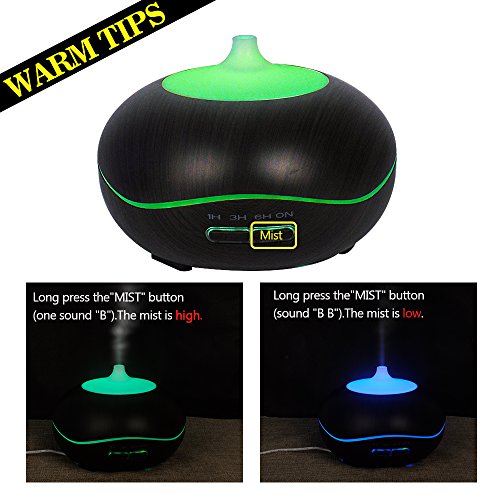 Aroma Diffuser,YCTA 300ml Wood Grain Ultrasonic Aromatherapy Oil Diffuser with Adjustable Mist Mode Waterless Auto Shut-off and 7 Color Changing LED Lights for Home Bedroom Baby Office