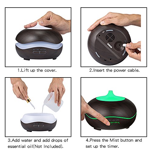 - Large Capacity and Great Mist Output: This aroma diffuser can hold up to 300ml of water. It can run up to 8 hours of continuous output.