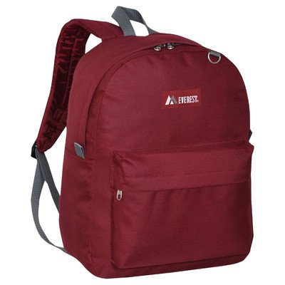 A traditional backpack, it features a large main compartment, a front pocket and a key ring