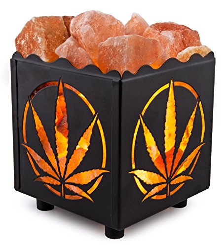 CRYSTAL DECOR Natural Himalayan Salt Lamp in Leaf Design Metal Basket with Dimmable Cord
