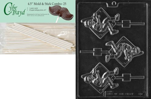 Cybrtrayd 45St25-S082 Baseball Player Lolly Sports Chocolate Candy Mold with 25-Pack 4.5-Inch Lollipop Sticks