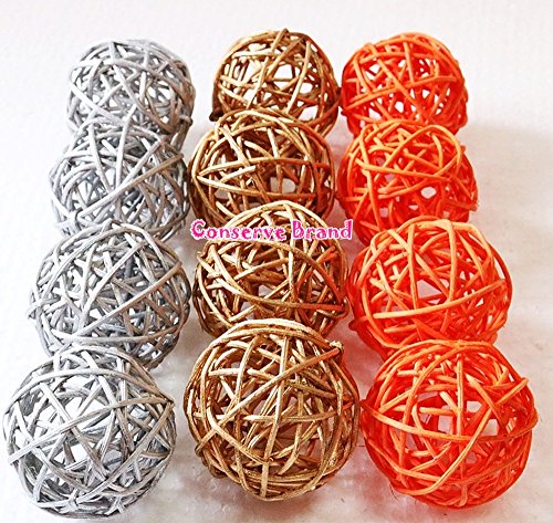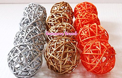 Christmas Gifts : Small Silver, Gold, Orange Rattan Ball, Wicker Balls, DIY Vase And Bowl Filler Ornament, Decorative spheres balls, Perfect For Decoration On Any Occasion 2 - 2.5 inch, 12 Pcs.