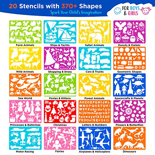***MIMTOM DRAWING STENCIL SET | THE PERFECT GIFT FOR EVERY CHILD***Includes 20 Plastic Stencils for Kids, 370+ Shapes & Much More!