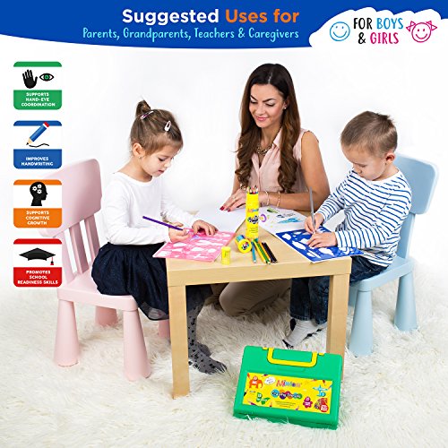 • The stencils with a number of easily recognizable designs are super thick for little kids, enabling them to correctly trace shapes and improve writing coordination.
