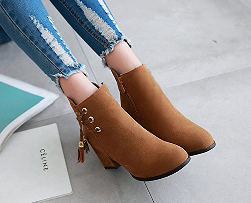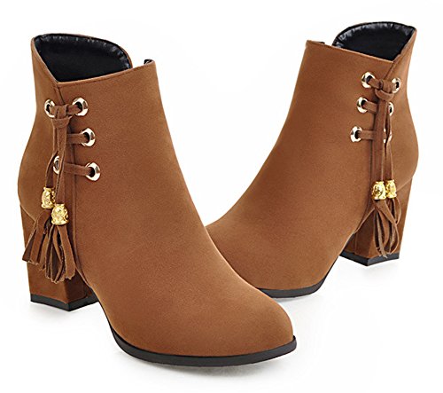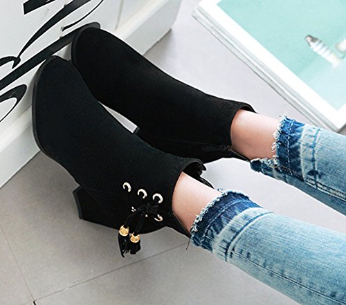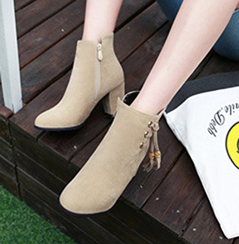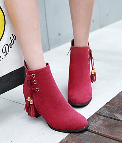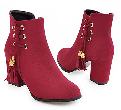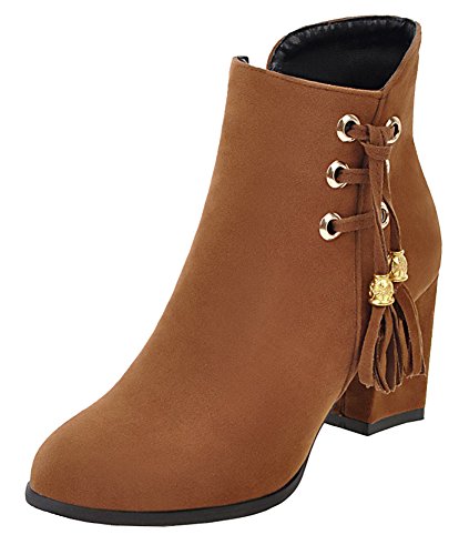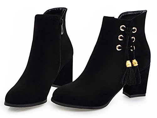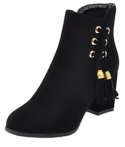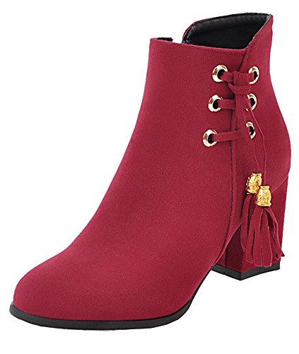 Binding : Apparel Product Description This pair of shoes is for women, girls, brides and young ladies. You will look elegant and stylish. The heels measure 2.8 inches. You will look slimmer and slender in their chunky heels. This pair of shoes features solid upper and ankle high. The design of round toe will make you sweet. You will look chic in their fringe decoration. It's convenient for you to wear in their zipper closure. The sole is made of good rubber. You will feel comfortable in their soft bottom. They are of high quality and durable. Come on and take them away! 0