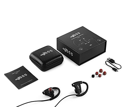 -. Binding : Electronics -. Brand : Best Stereo Sound -. Color : Black -. EAN : 0657258983960 -. Feature : Lastest IPX7 Waterproof Protection BSS wireless earbuds upgraded IPX7 sweatproof rating, prevent the headphones damaged from ordinary splashing water and rain. Keep the earphones working well no matter you're getting drenched in sweat after a grueling workout. / Adjustable Comport Wearing You can choice ear tips between small, medium or large sizes(package included), you're bound to have a secure fit that actually always stays in despite you are on the move while running, jogging, or exercising. / Convenience Carrying Case & Cord Clip Come with a high quality carrying case provides full protection for your headphones on every trip you take. With enough space for all the accessories, exclusive cord clip can shorten the wire to fit your back neck or head. / UP TO 8 HOURS Music playing for full battery charge. Super quick charge time with full charge light indication.The headphone battery status will be automatically displayed on the IOS Phone screen. / OUR PROMISE TO YOU - We got you covered! Your purchase includes a hassle-free 30 days Money Back Guarantee. If you don't like your brand new Wireless Bluetooth Headphones simply return them for a FULL REFUND. No questions asked. -. Label : Best Stereo Sound -. Manufacturer : Best Stereo Sound -. PackageQuantity : 1 -. ProductGroup : Wireless -. ProductTypeName : CONSUMER_ELECTRONICS -. Publisher : Best Stereo Sound -. Studio : Best Stereo Sound -. Title : Best Stereo Sound Wireless headphones, Bluetooth Earbuds Sports Earphones with mic Headphones Waterproof Headsets For Gym Running Workout 8 hours -. UPC : 657258983960