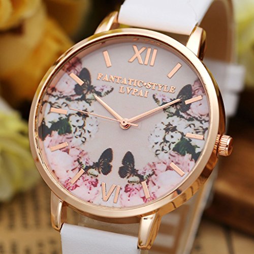 -. Binding : Watch -. Brand : Top Plaza -. Department : womens -. Feature : Case Dia: 1.53'' Case Thickness: 0.3'' Band width: 0.6'' / Material: PU Leather/ Alloy Case / Non scale design. Beautiful butterflies in the watch dial. A must have watch for those who love butterflies. / Not waterproof. Please don't wear this watch when washing hand or taking shower. / A perfect gift in Christmas, Velentine's Day, Birthday. Comes with a Top Plaza gift pouch. -. Label : Top Plaza -. Manufacturer : Top Plaza -. Model : ATPUS63391 -. MPN : ATPUS63391 -. PartNumber : ATPUS63391 -. ProductGroup : Watch -. ProductTypeName : WATCH -. Publisher : Top Plaza -. Studio : Top Plaza -. Title : Top Plaza Fashion Women Girls Watches Pink Butterfly Non Scale Rose Gold Case With PU Leather Strap - White