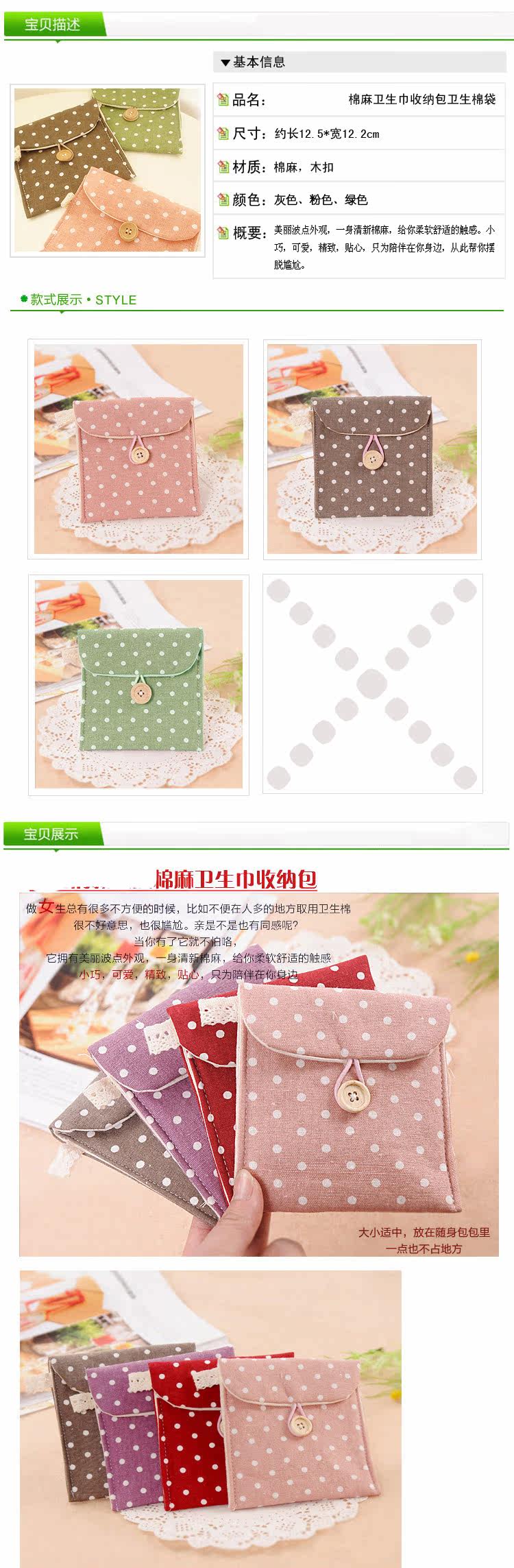 清新波点卫生棉包