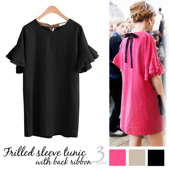 フレアスリーブ&バックリボンが可愛いコットンチュニック♪
