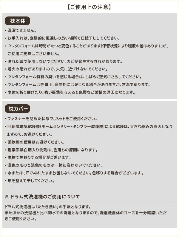 | 仕様 | 枕本体:洗濯不可 枕カバー:洗濯可、乾燥機不可 |