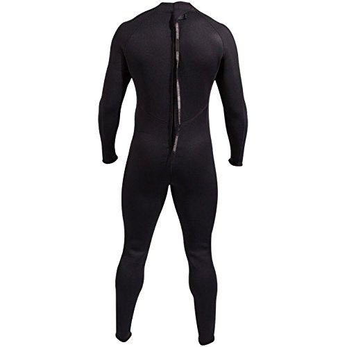 Amazon.com The Men's Premium 3/2-millimeter Neoprene Dive Suit provides the simplicity and comfort of anatomically-cut one-piece construction, with a multi-thickness design that provides core warmth at the torso and thinner arms and legs for mobility. Designed for easy on/off, the suit features a generously cut back zipper with a heavy-duty #10 YKK zipper, an adjustable Velcro collar, and Lycra trimmed wrist and ankle seals. Built for long-term durability, the suit features sturdy and smooth flatlock seams with spot taping at key intersections and flexible, thermal bonded knee-pads for protection. Additional details include an internal zipper pocket and tear-away sizing tags. Features and Specifications: - Premium neoprene construction