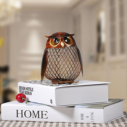 Studio : Tooarts Publisher : Tooarts Binding : Kitchen Product Description This is a handmade owl-shaped metal sculpture.The environmental paint keeps it stainless, the grid shape fulfilled the product with the sense of modern design. It can be used to contain coins or small changes. Practical and artistic, looks charmingly naive. Features£º Metal sculpture, handmade, mesh design. Environmental paint. Practical, can be used to contain small changes and coins. Perfect for interior decoration: Bars, dining tables, bars. specifications: Material: iron, paint Color: dark red Product size: L11.4 * W10.8 * H14.4cm/ L4.5 * W4.3 * H5.7in Package size: L13.8 * W12.6 * H17.2cm/ L5.4 * W5.0 * H6.8in Product weight:163g/ 5.75oz Package weight:259g/9.14oz Package list: 1*Owl Shaped Grid Pot Piggy bank 0