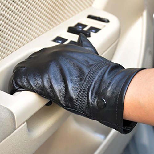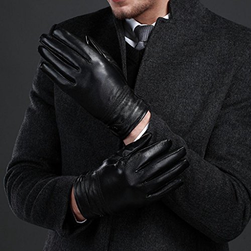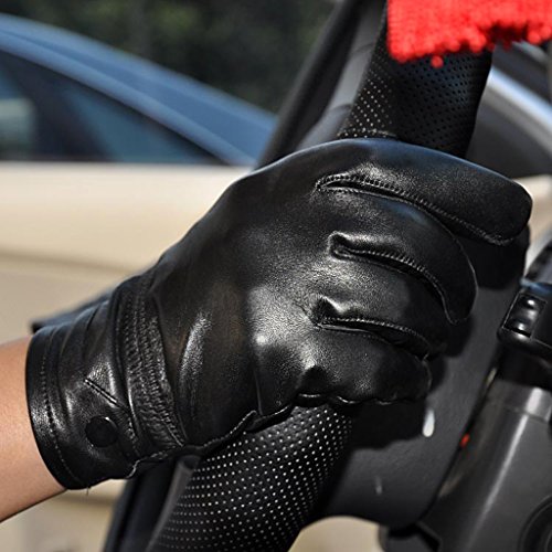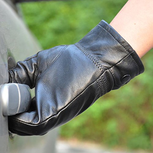Description: - Stylish Classy Looking, Super Warm and Comfortable. A great gift for men. - Made of Genuine leather and fleece lining, Keep your hands Warm in the Cold Winter. - Perfectly fit for indoor and outdoor activity such as working bike, motorbike, cyling, driving. - You can wear it and always driving your car any time. - Hand Wash. Specification: - Material: Genuine Leather - Color: Black - Size: L / XL - L - Total Length: approx. 23.2cm / 9.1inch - Middle Finger Length: approx. 8.3cm / 3.3inch