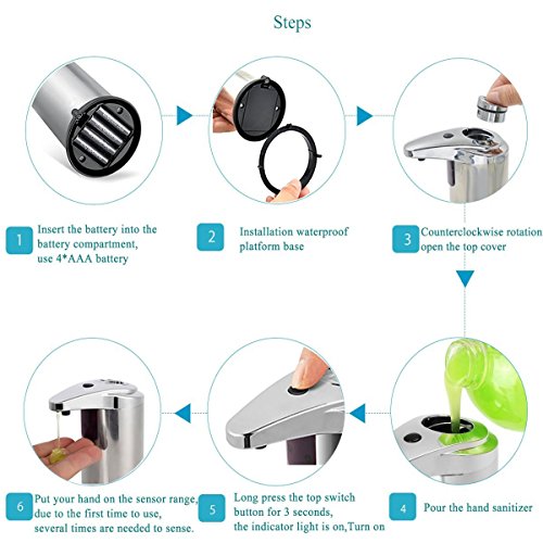 - Touchless and Easy to Setup:The sensor detects your hand within One Pass,Put your hand under the sensor to let the dispenser start to work. It made noise then soap came out,don't need to wave your hand multiple times.Washing hands without else dirty