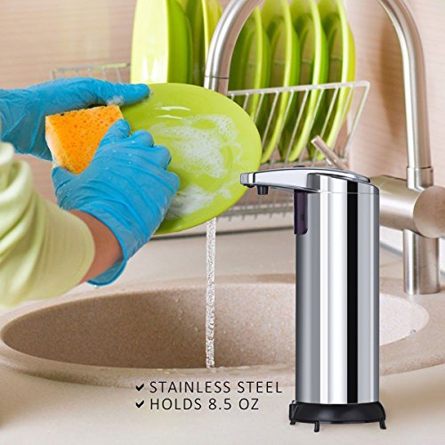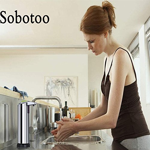 Soap dispenser,Sobotoo Touchless Stainless Steel Automatic Soap Dispenser,IR Infrared Motion Sensor Hand Free Dish Soap For Bathroom & Kitchen,Liquid Capacity 8.54oz/250ml