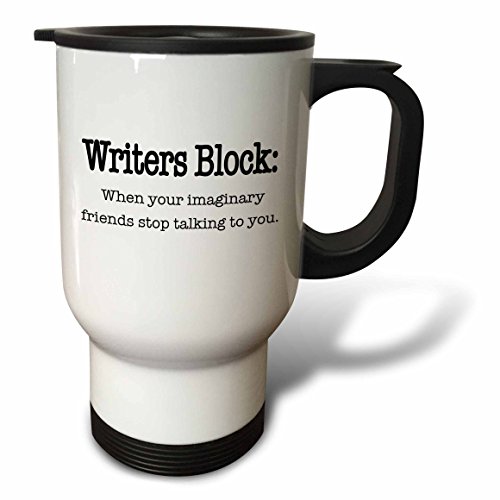 3dRose "Writers Block When Your Imaginary Friends Stop Talking to You" Travel Mug, 14-Ounce