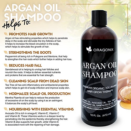 Oragonix Hair regrowth Therapy Shampoo is a uniquely formulated blend of powerful hair growth factors. This powerful fusion uses the benefits of Argon oil, Avocado oil, Tea tree oil, Peppermint oil, Sandalwood oil, Biotin, Apple stem cells, and other clinically proven ingredients to help promote hair growth. Free of harsh chemicals, Oragonix Shampoo is safe and effective. Nourishing and gentle this Hair growth therapy shampoo starts at the scalp, with circulation promoting elements like Biotin and peppermint oil while helping create a PH balanced environment, working in harmony with a specially crafted blend of DHT blockers, and Hair strengtheners. The ingredients are chosen to synergistically work together to increase effectiveness and revitalize and repair the hair and scalp. Safe for daily use, for all hair types and for both men and women.Feature