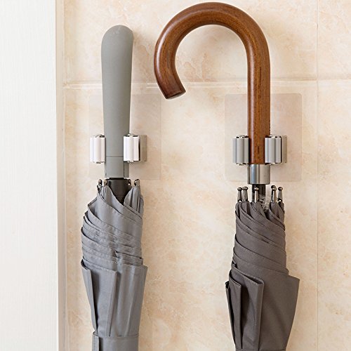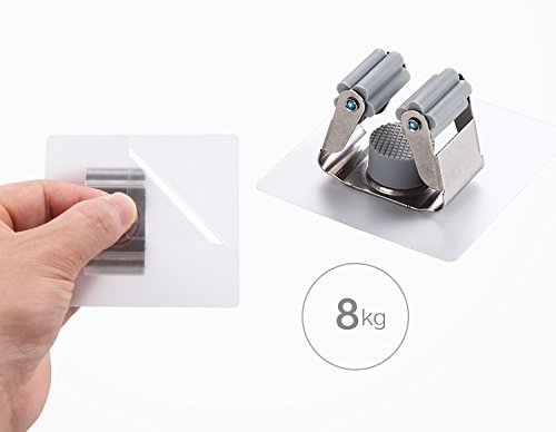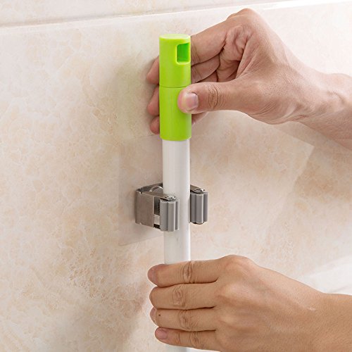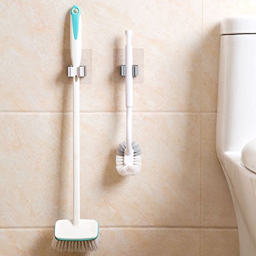 Plastic Self Adhesive Broom Hooks, Garden Tool Spring Clips Holder From Hoocozi, 2Pcs, White & Grey