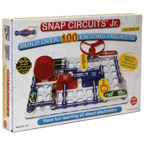 -. Binding : Toy -. Brand : Elenco -. EAN : 0664049998225 -. Feature : Elenco Snap Circuits Jr. 100 Project Set - Includes Bonus Pop Toob! / Curious young minds can learn the basics of electronics as they build more than 100 exciting projects with this kit. / Work on projects that make sound effects, engineer different types of alarms, build touch circuits and play games. Contains over 30 parts in all. Requires 2 "AA" batteries, not included / Great for Adults & children ages 8 and up. / Includes retail packaging & intructions plus bonus pop toob (color may vary) IF NOT AVAILABLE, WE RESERVE THE RIGHT TO SUBSTITUTE BONUS ITEM WITH SIMILAR ITEM OF EQUAL OR GREATER VALUE -. IsAdultProduct : 0 -. Label : Elenco Electronics Inc -. Manufacturer : Elenco Electronics Inc -. ProductGroup : Toy -. ProductTypeName : TOYS_AND_GAMES -. Publisher : Elenco Electronics Inc -. Studio : Elenco Electronics Inc -. Title : Elenco Snap Circuits Jr. 100 Project Set - Includes Bonus Pop Toob! -. UPC : 664049998225